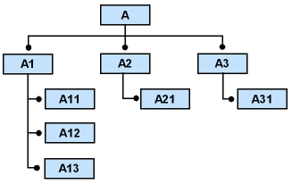 Assume we want to see all costs registered between 01-Jan to 31-Jan. The full underlying object structure will always show up, even if the cost in chosen interval is zero. The division of the Structure Cost for the top object, Object A, within this time period is equal to: