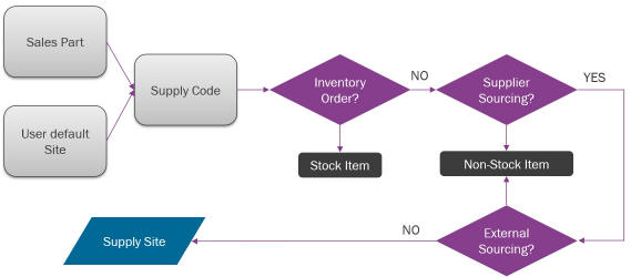 For parts categorized as Stock-Item, Available Qty will be calculated as CO Plannable at current date for demand site or supply site, depending of the sourcing. For parts categorized as Configurable, Package or Non-Stock Item no availability calculation will be performed.