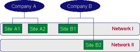 The network could cover a number of sites from different companies that should be planned as one unit. A potential scenario is shown in the example below.