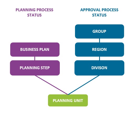 計画単位レベルでは、 2 つの異なる目的のために 2 つの異なるステータスがあります。