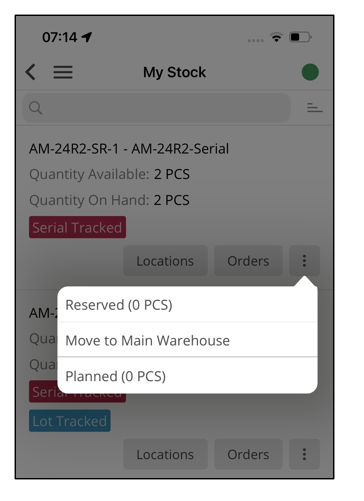 モバイル アプリでさまざまな在庫の動きに応じて [手持在庫] がどのように更新されるかの詳細については、「在庫移動」ページをご覧ください。