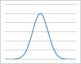 The Gauss filter soothes the peaks of a season profile. The graph below shows a typical shape of a Gauss filter. This function can be ran several times the season profile will then become more and more smooth.