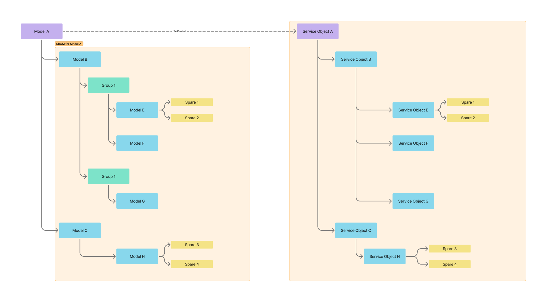 When a Service Object is created from a Model with an SBOM, an Object Structure will be generated based on the SBOM. Models in the SBOM will be mapped as Service Objects.