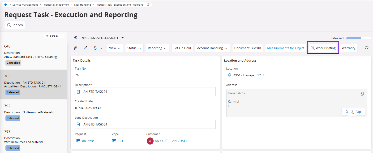You can generate the Work Briefing summary on the Request Work Task – Execution and Reporting page.