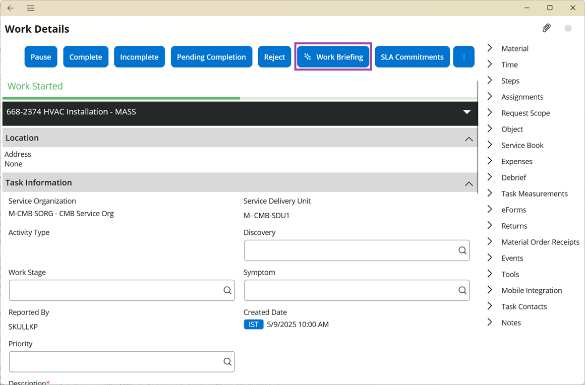 Also, You can generate the Work Briefing summary on the Work Details page on the Mobile client.