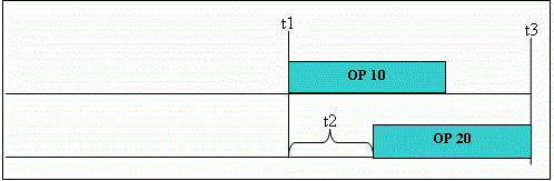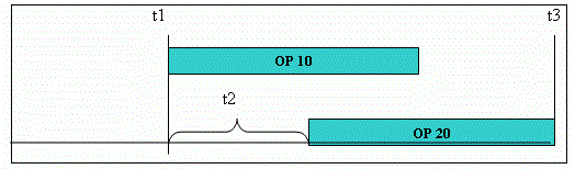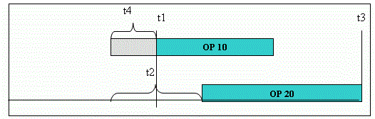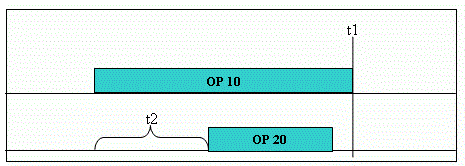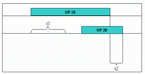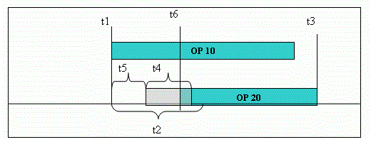 t2 = OP 20 Transportation Time + The time it takes OP 20 to manufacture the last delivered overlap quantity from