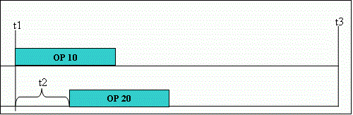 Therefore the new overlap will be 20% and the remaining operation time for OP 20 will be reduced by 30% because of the reported quantity. OP 20 will not be scheduled to start directly after the new calculated overlap because then it will be completed before OP 10, whereas it is not allowed to be completed before the finish time of OP 10 plus the time it takes to manufacture the last delivered quantity from OP 10 to OP 20. See Operation Run Rate above.