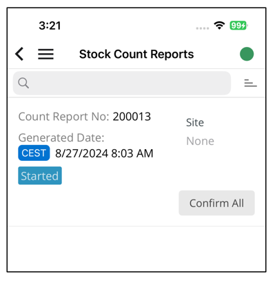 This is how Stock Count Reports appears on the mobile client: