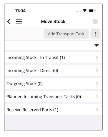 Note: it is not possible to create a transport task to replenish your own stock from a central warehouse using the mobile app. This functionality is available only in IFS Cloud Web.