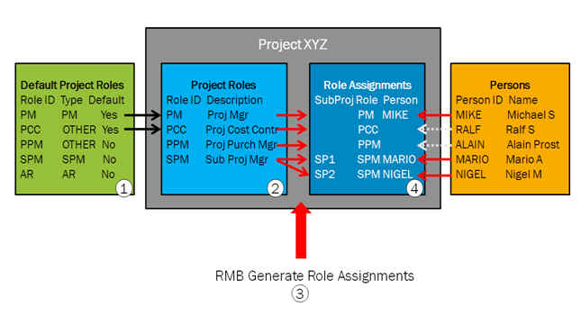 The Generate Role Assignments command will create role assignments and assign persons for project roles defined in the Role Definition section under the Roles tab in Project Setup Parameters page.