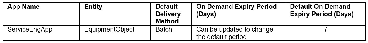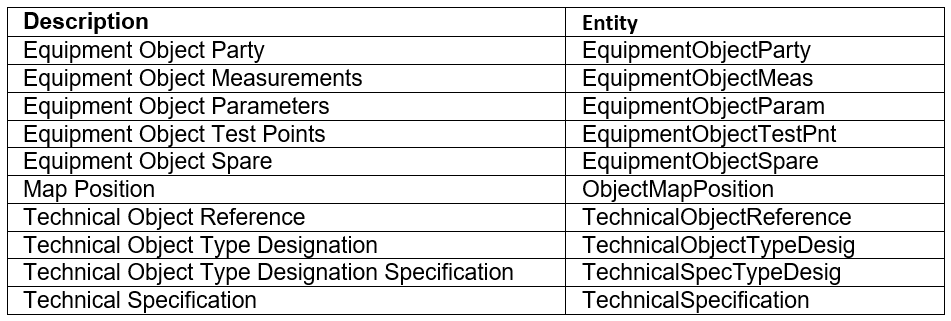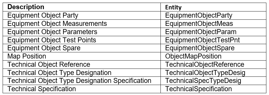 When an object is downloaded entities EquipmentObject and EquipmentObjectParty are immediately downloaded whereas additional related data will be sent through OnDemand Push. The following entities are handled through OnDemand Push.