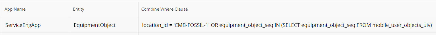 For example, if location CMB-FOSSIL-1 is known as an offline location, all objects belonging to that location are needed to be brought to technitions' devices who work in the location in addition to the work task objects. This can be achieved as follows.