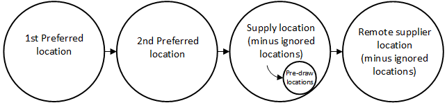 - Supply location's PREDRAW locations if no inventory is found elsewhere within the supply location.