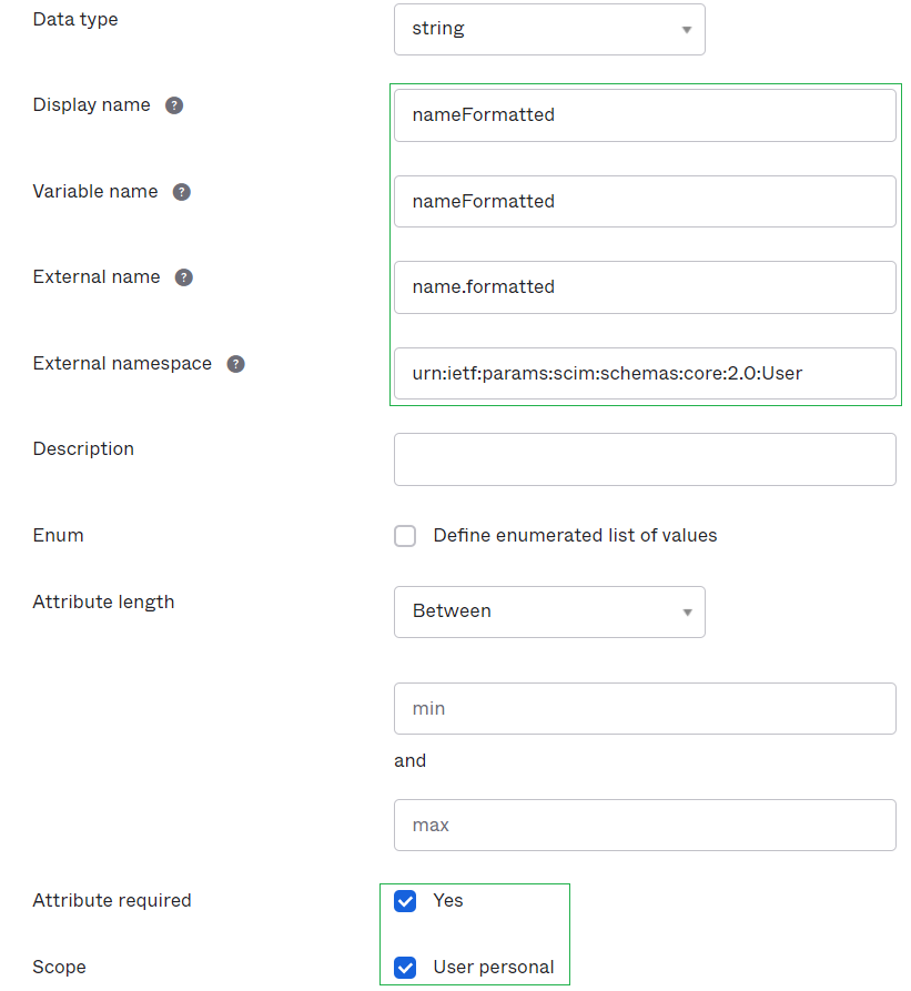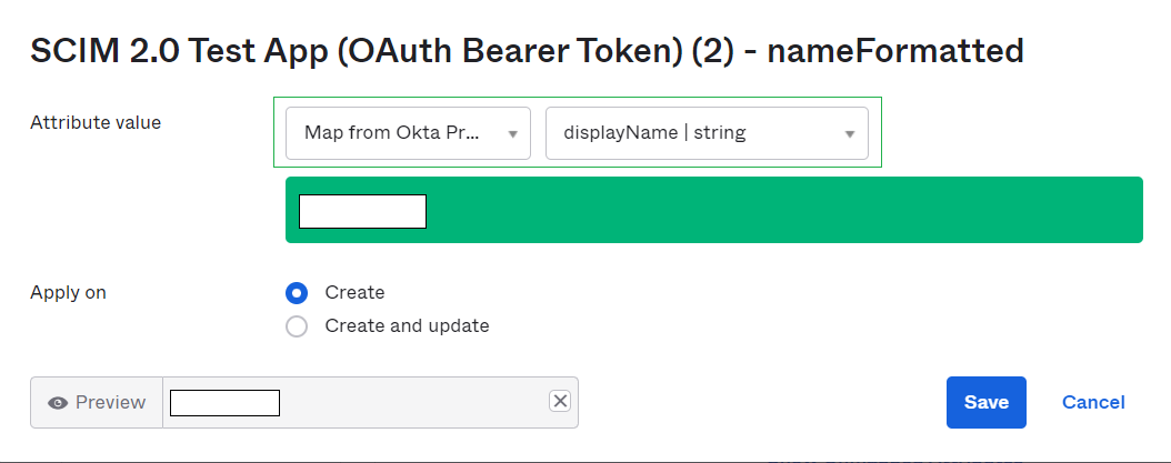 A mapper for formatte name (name.formatted SCIM attribute). See picture below for configuration for this attribute.