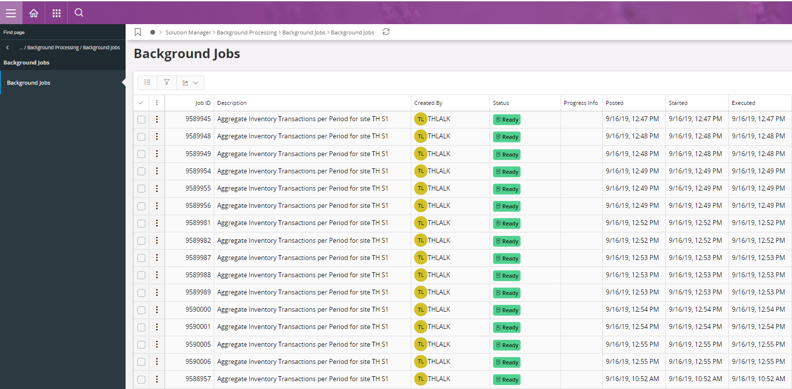 - Ready - A Background Job has been successfully executed without any errors or warnings. Background Jobs in state Ready cannot be modified. The Background Job can be manually removed, or it will be removed by the Light Cleanup.