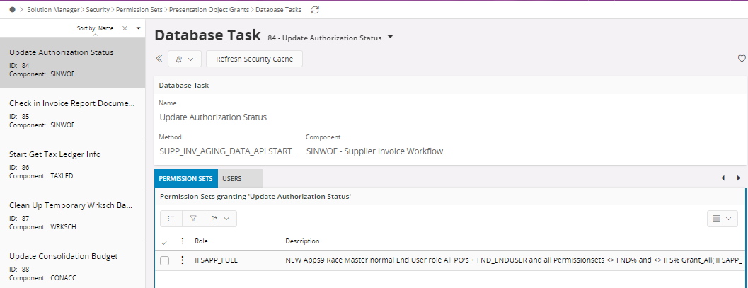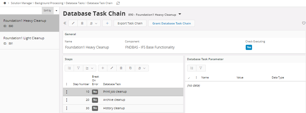 Used to export task definition to a file. This file can be used to import the task at another installation of IFS Cloud. - Grant Database Task