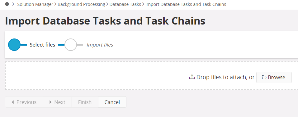 Use the Import Database Tasks and Task Chains page to import tasks. The import only accepts XML-files generated from the export in the application. Import of a Database Task or Database Task Chain will always replace existing tasks.
