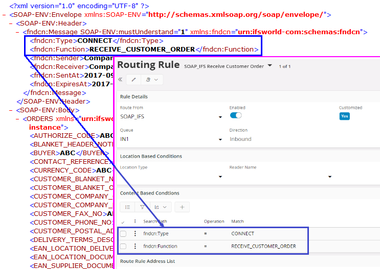 is the whole inbound XML strings that can't be recognized by IFS Connect as having a known envelope. Routing parameters can be located in any element or attribute in the XML string.
