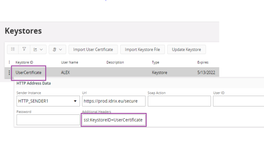 Some HTTPS servers may require the client (i.e. HTTP Sender) to present themselves with own certificate. If the URL above points to this type of server you have to supply the HTTP Sender with a keysore containing your client certificate.