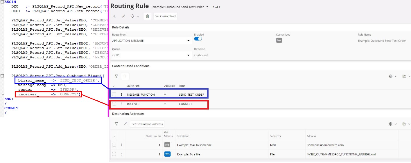 - An inbound message is normally routed to a REST API or a PL/SQL method but can also be routed to Transport Connectors, e.g. to the File Transport Connector for archiving a copy of a transformed file in a specific folder.