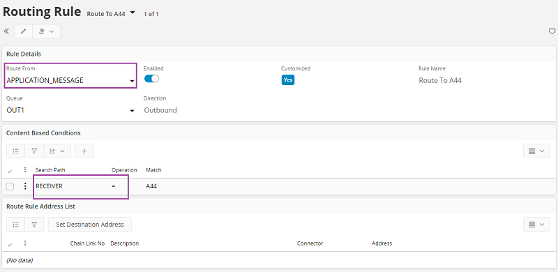 Outbound Routing Rules with value APPLICATION_MESSAGE