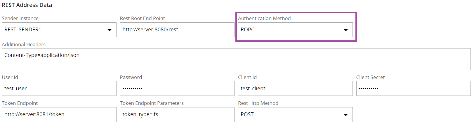 Choose the authentication scheme required by the REST service. The supported authentication schemes are Basic, Bearer and Azure Shared Key, Client Credentials and ROPC(Resource Owner Password Credentials flow). New form fields will be appeared according to the Authentication Method selection as HTTP routing address form. - Additional Header Parameters