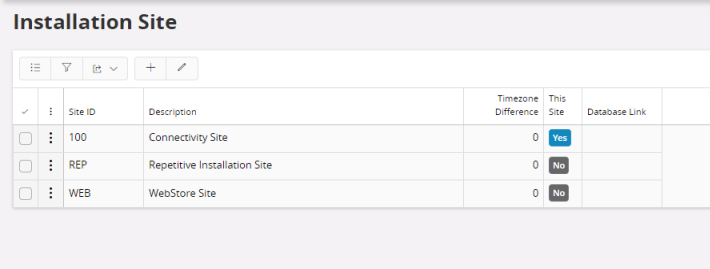 . If an installation site is created without any database link, the data will be transmitted within the same database and the same application owner. Installation Site also includes information used by Replication, Timezone Difference