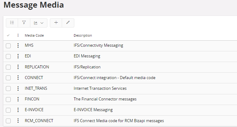 is used, the Media must be registered in this window. Media is not used by Connectivity at present time. It can be used by third party tools (like Amtrix) to collect messages to send.