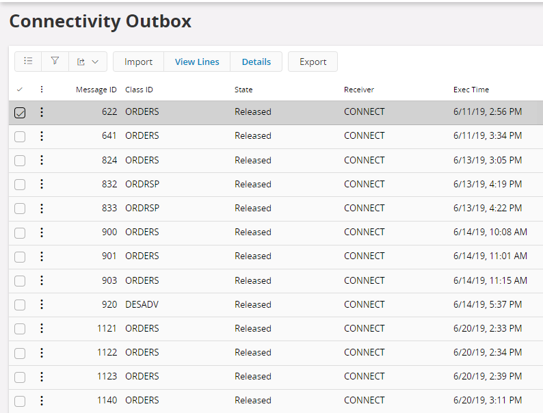 These pages can be used to browse or administrate messages contained in the Connectivity Outbox.