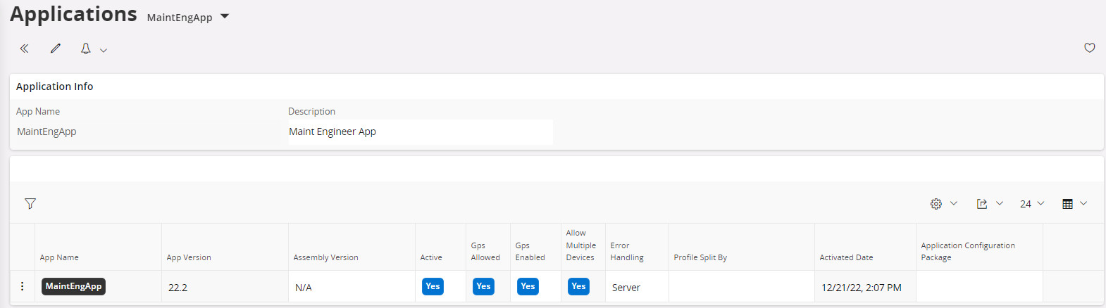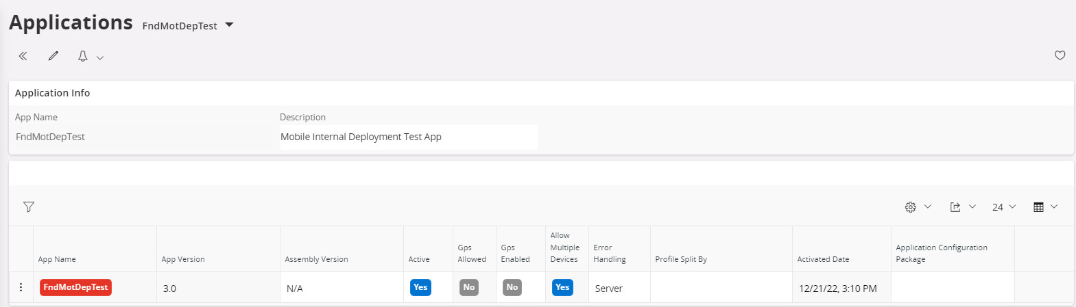 If the mobile app has been correctly installed and without any error message you will see the App Name with a black badge. If the mobile app has not been correctly installed, you will see the App Name with a red badge. You can select the row and choose Error Details to see the actual error.