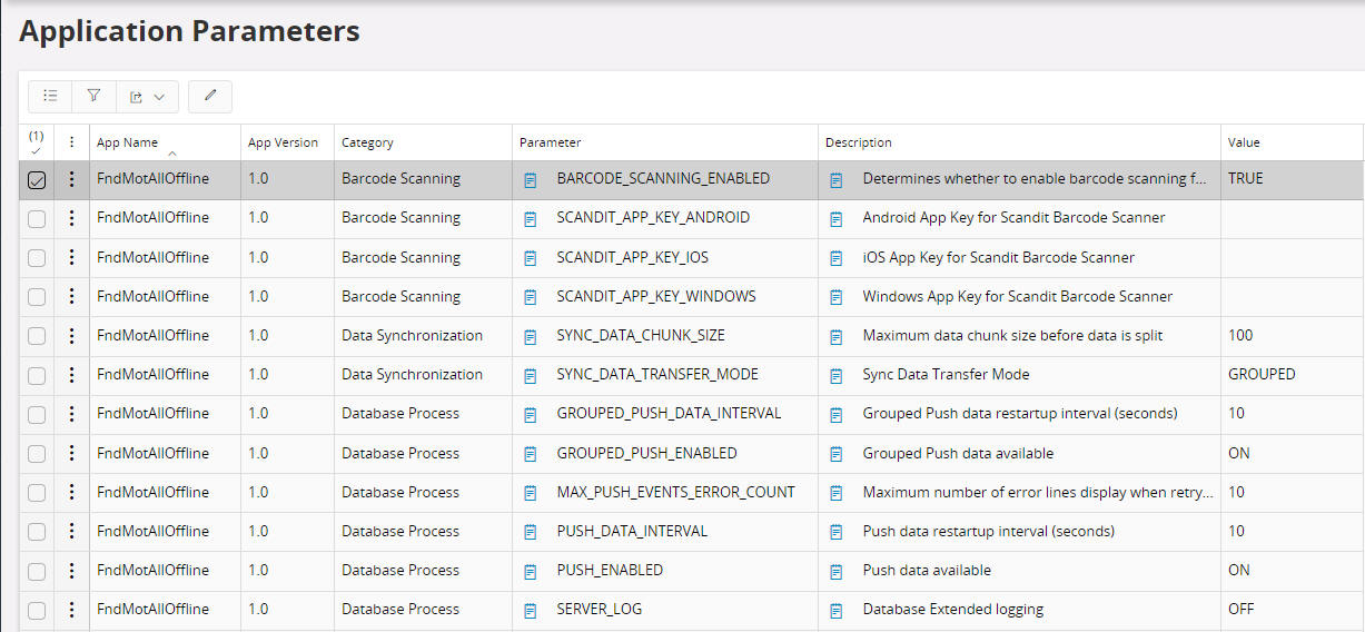 A mobile app is enabled by default at installation. When an mobile app is enabled it will install Entity Details, Synchronization Rules, Application Parameters, Events and Event Actions for Push synchronization and Database Tasks.