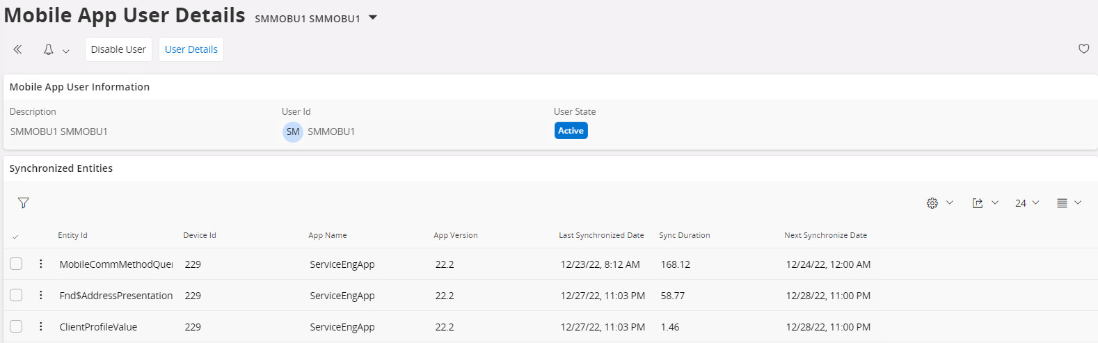 Use the Mobile App User Details screens to browse and manage mobile app users including Apps/Devices and viewing Installed Apps, Device Locations, Logs and Synchronized Entities.