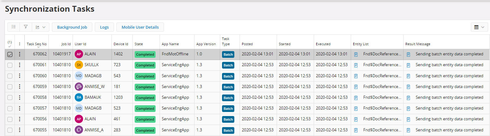 The Push synchronization process will create Tasks per User/Device/Application/Entity when the entity record is changed in IFS Cloud.