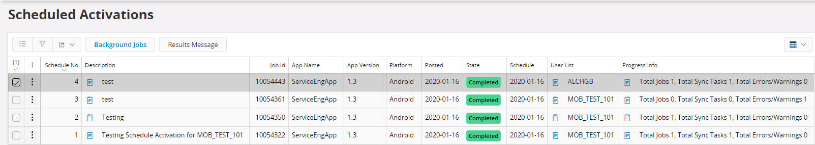 The Scheduled Activations screen displays all scheduled activations created by the Create Scheduled Activation process.