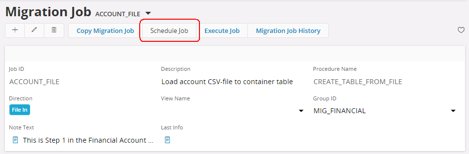 To create an execution plan for the background task, the Schedule Job button is available from both Migration Job and Execute Job Forms.