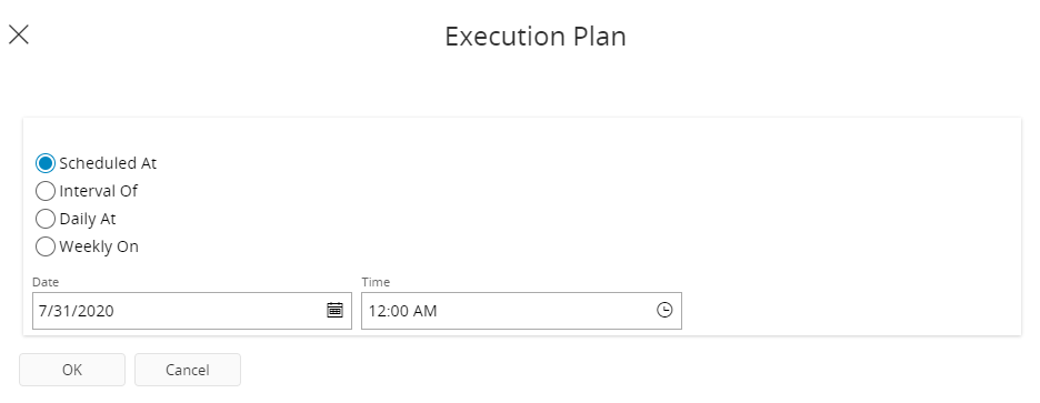 Note!: In order to schedule the executions for File In type Migration jobs, File Location must be On Server for File In type Migration Jobs. You can not schedule an excel migration job because it is not meant to run in background.