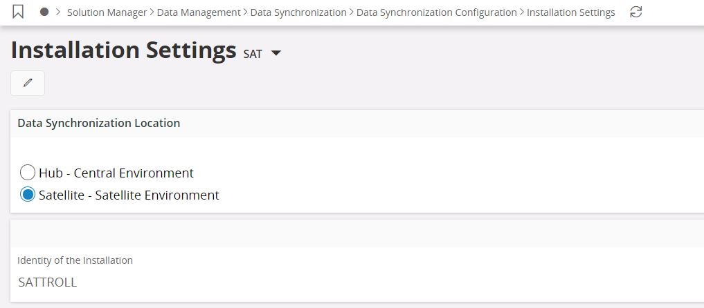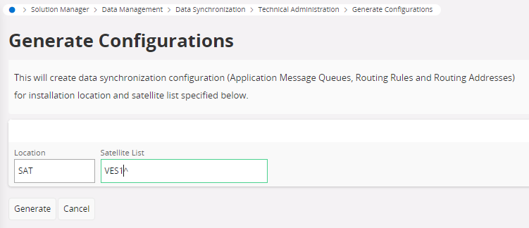 - Navigate to Solution Manager\Data Synchronization\Data Synchronization Configuration\Satellite Configuration page