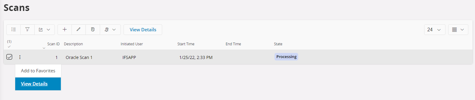 - Once the scan is started user can check whether the 'IFS Data Catalog scan initialization' background job is created and in 'Posted' state.