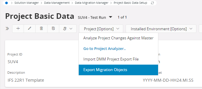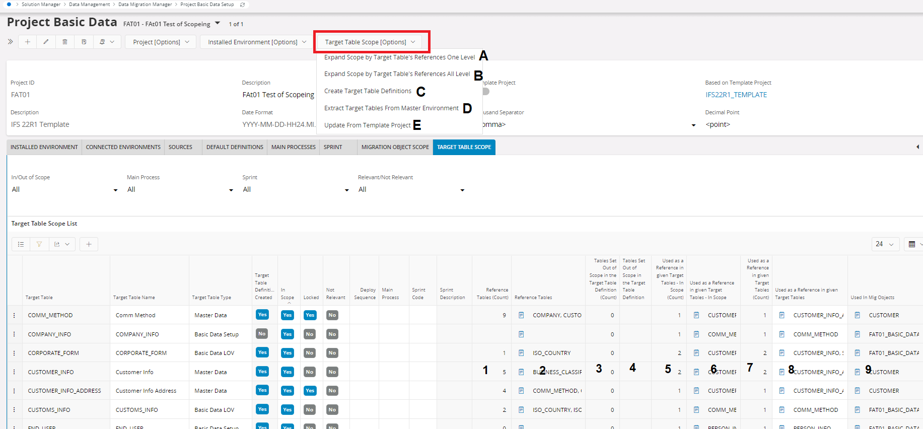 Migration Object defined under Migration Object Scope tab in Project Basic Data is the core element throughout the migration process in Data Migration Manager. Any target table that is used to migrate data into in IFS environment should be bind to a migration object. This can be loaded using the template project or user can define his own and user have the freedom to define its scope.