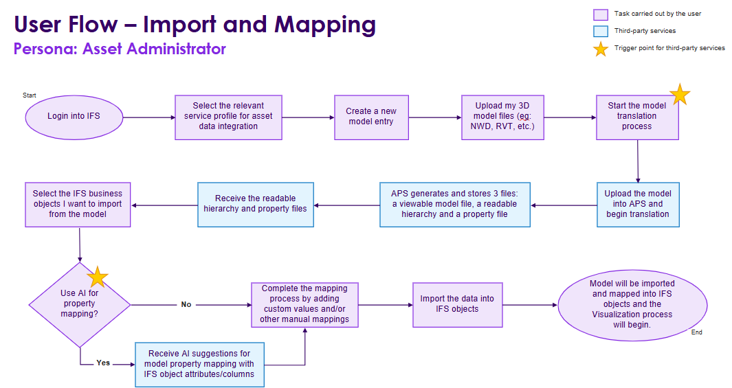 The mapping and importing process is commonly handled by the asset administrator who ensures that the data related to assets is seamlessly integrated into the IFS Cloud and the data is mapped precisely to enable visualization.