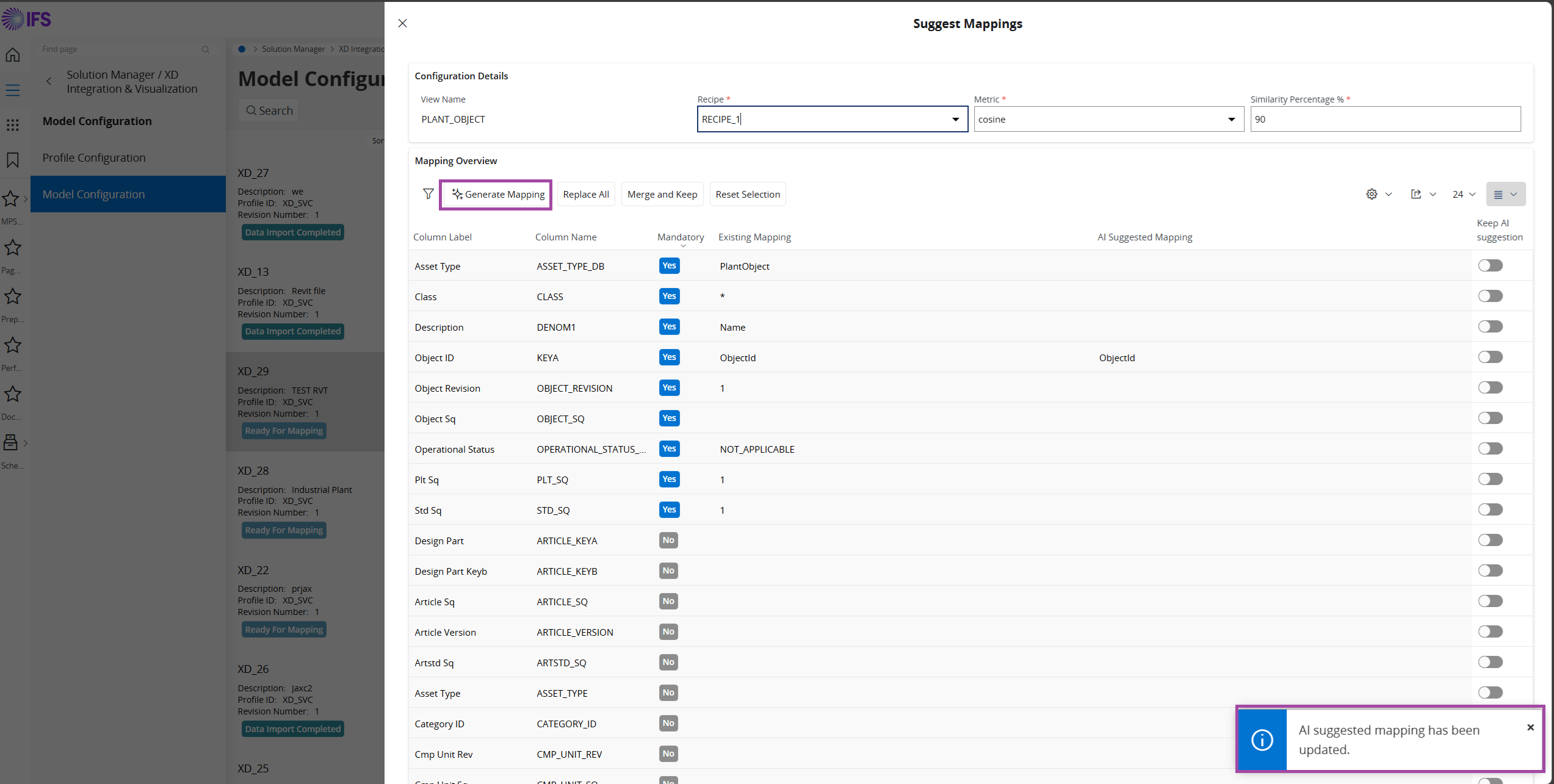 Click the Generate Mapping button to populate the mapping suggestions in the AI Suggested Mapping column.