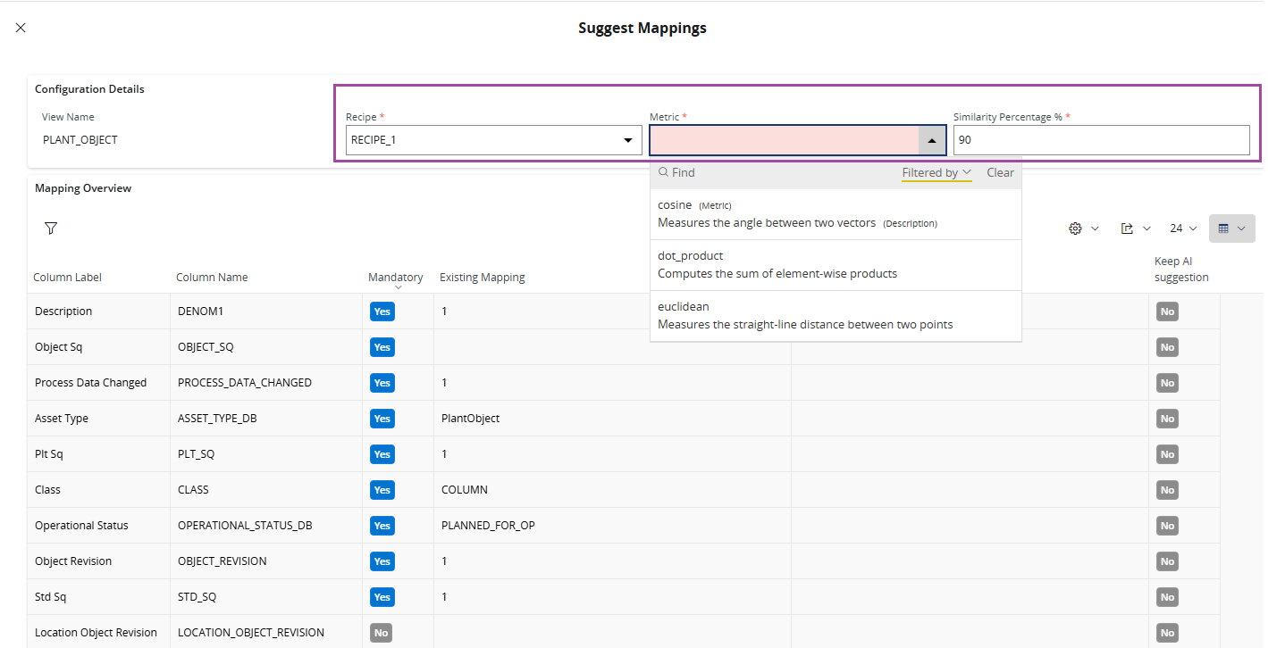 Use the toggle button on the Keep AI Suggestion column to choose an AI mapping suggestion over an existing mapping.