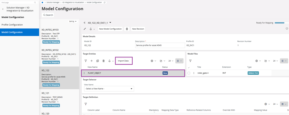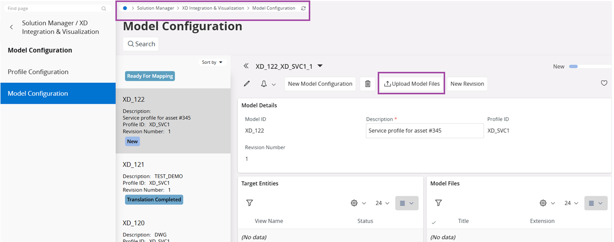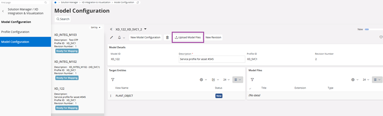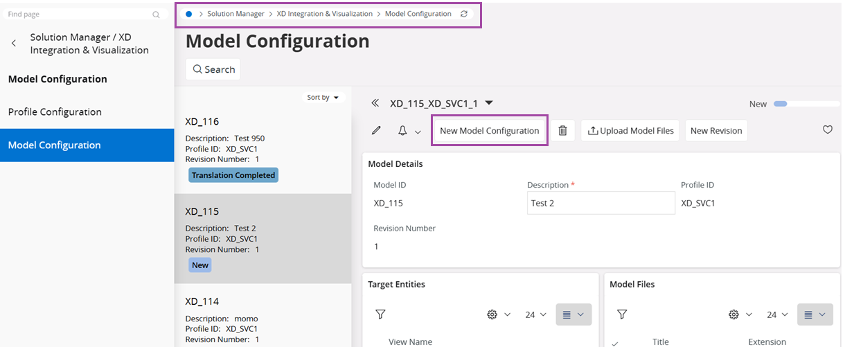 Navigate to Solution Manager > XD Integration & Visualization > Model Configuration.