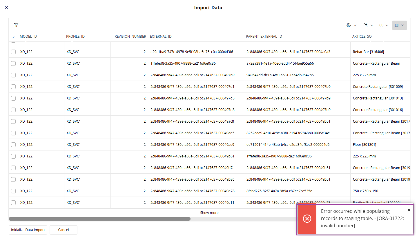 type, the validation occurs only while the import process takes place, so in case the mapping is not done correctly and you encounter an error, you need to go back to the Model Configuration page and correct the mapping first.Note: Make sure you fill the Property Path column for fields with the Override With value as