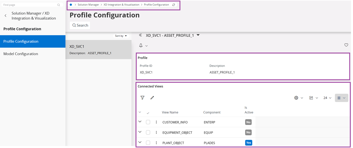 Before you begin: Make sure you have a service profile set up. Navigate to Solution Manager > XD Integration & Visualization > Profile Configuration to view the existing profiles and their connected views.