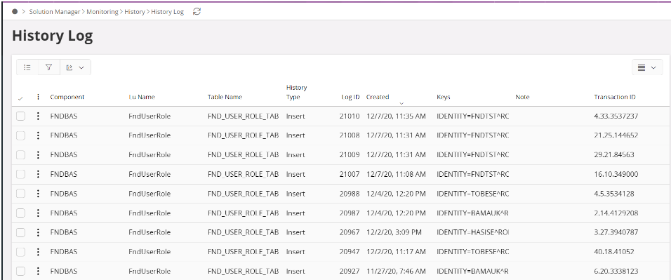 Transaction Id | Id that keeps history records created within the same transaction together |