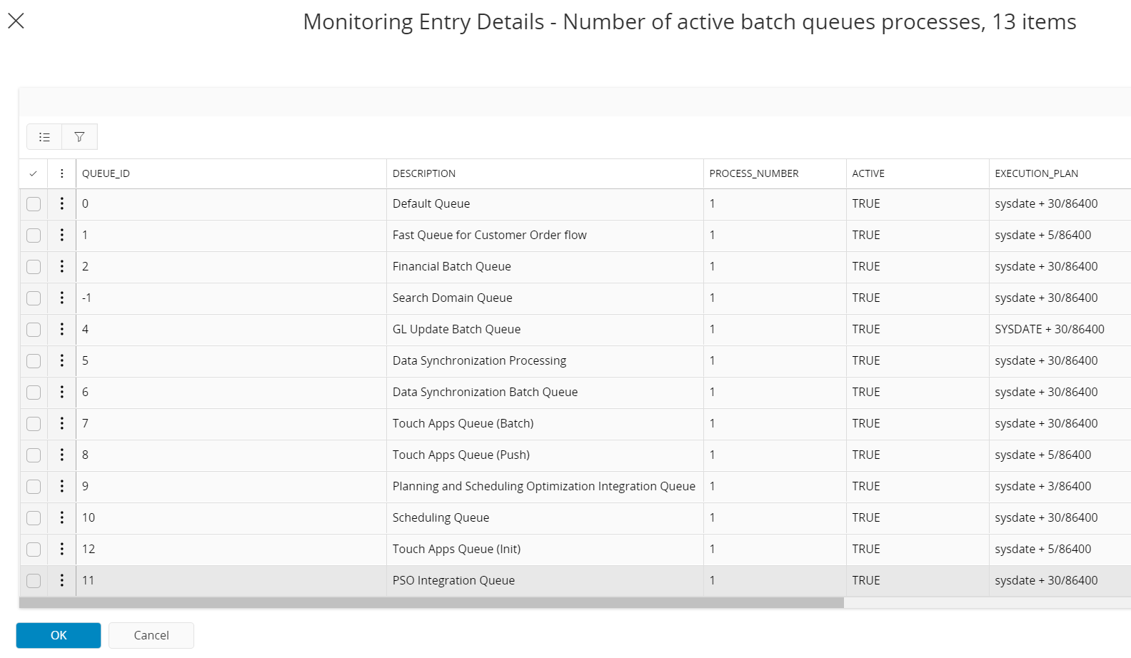 For a specific entry click on Details to view more information, for example the number of batch queues.