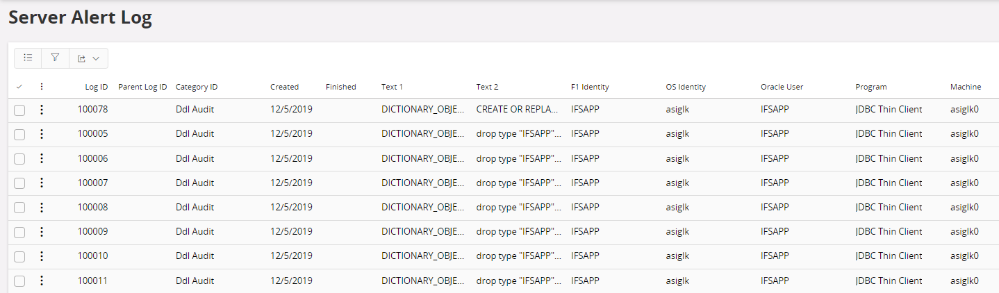 The Server Alert Log makes it possible for system administrators and installation technicians to trace different activities in the server. To view the logs open the Server Alert Log form in Solution Manager / Monitoring folder in the Navigator. Read more About Server Alert Log