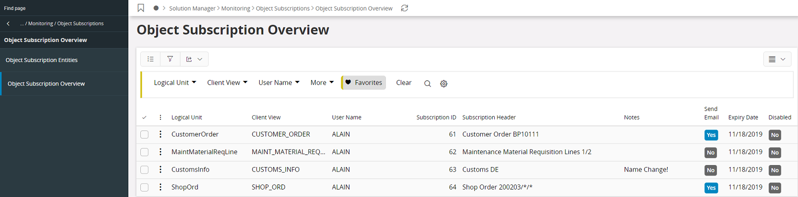 - Disable Subscription - Disable the subscription. The user will not get any update when the particular object has changed.