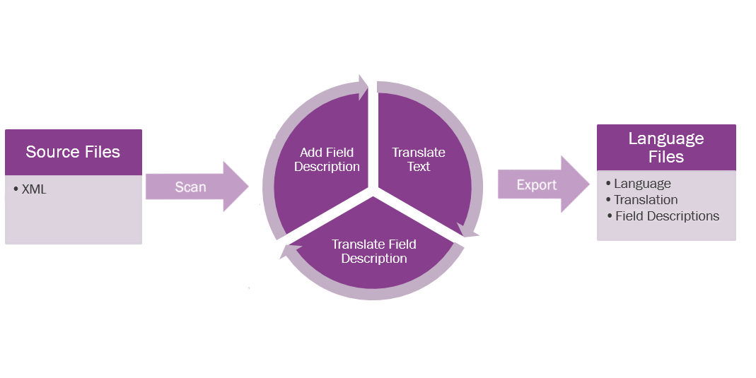 The platform builds on best-practice also when it comes to localization. Therefore IFS Translation Manager only covers the aspects of localization where available support is low or unsatisfactory, where best-practice is a custom-built tool. IFS Translation Manager is used for scanning the client and server code for texts that needs to be translated into a language or import terms from another system. Output from Translation Manager is the language files and the translation files that is used in the client so the user can see the text in their own language.